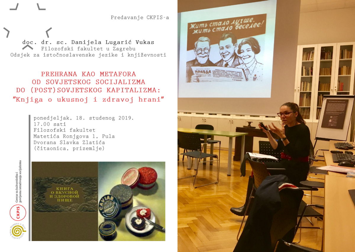 Svoj ciklus javnih predavanja u ovoj akademskoj godini CKPIS započeo je s dr. sc. Danijelom Lugarić Vukas, docenticom na Odsjeku za istočnoslavenske jezike i književnosti Filozofskog fakulteta Sveučilišta u Zagrebu, koja je u ponedjeljak, 18. studenog 2019., u 17.00 sati na Filozofskom fakultetu, u Dvorani Slavka Zlatića (Ronjgova 1, prizemlje, čitaonica) održala predavanje pod naslovom Prehrana kao metafora od sovjetskog socijalizma do (post)sovjetskog kapitalizma: "Knjiga o ukusnoj i zdravoj hrani".