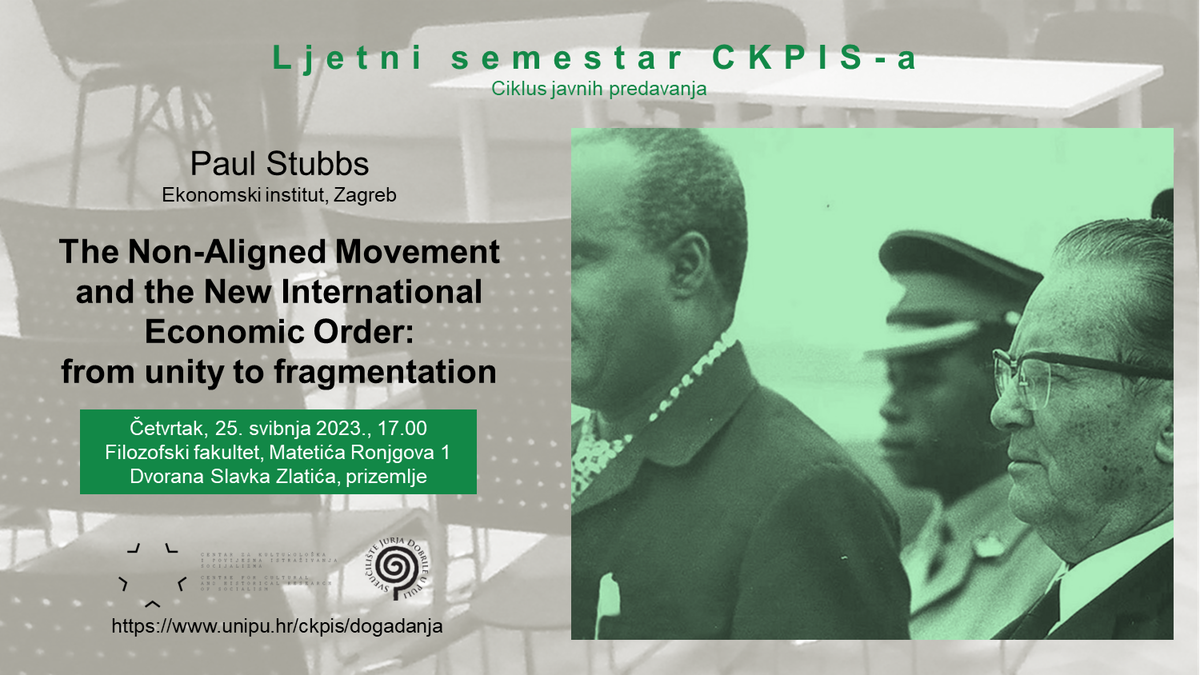 Novi gost ciklusa javnih predavanja Ljetni semestar CKPIS-a je sociolog Paul Stubbs s Ekonomskog instituta u Zagrebu. Predavanje pod naslovom The Non-Aligned Movement and the New International Economic Order: from unity to fragmentation (Pokret nesvrstanih i novi međunarodni ekonomski poredak: od jedinstva do razlomljenosti) održat će u četvrtak, 25. svibnja 2023., u 17.00 sati u Dvorani Slavka Zlatića, u prizemlju Filozofskog fakulteta u Puli, Matetića Ronjgova 1.