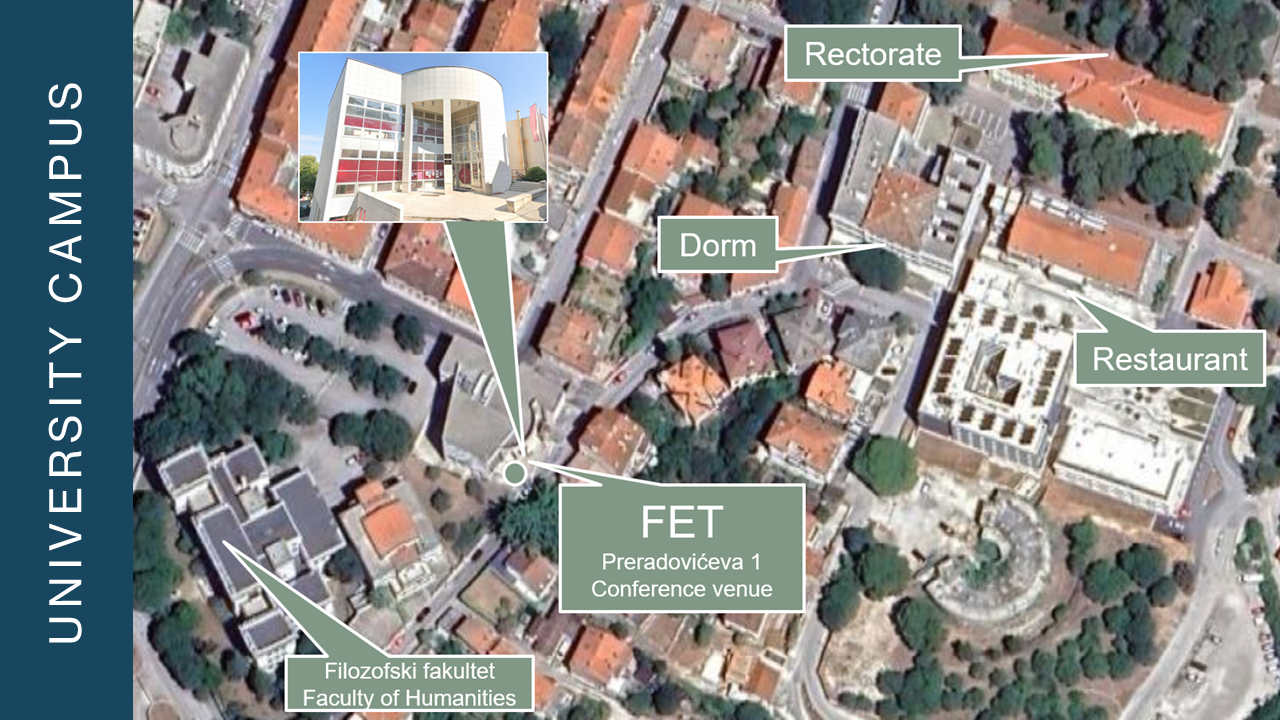 kod glavnog ulaza na FET, ispred dvorane Pula