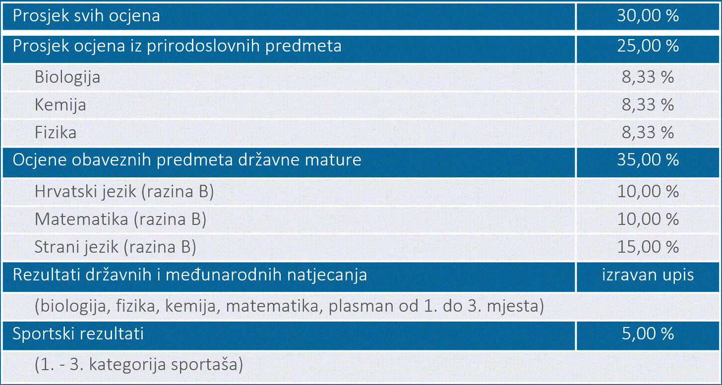 Pravo na upis stječu pristupnici prema ostvarenim bodovima na konačnoj rang-listi do popunjavanja upisne kvote.