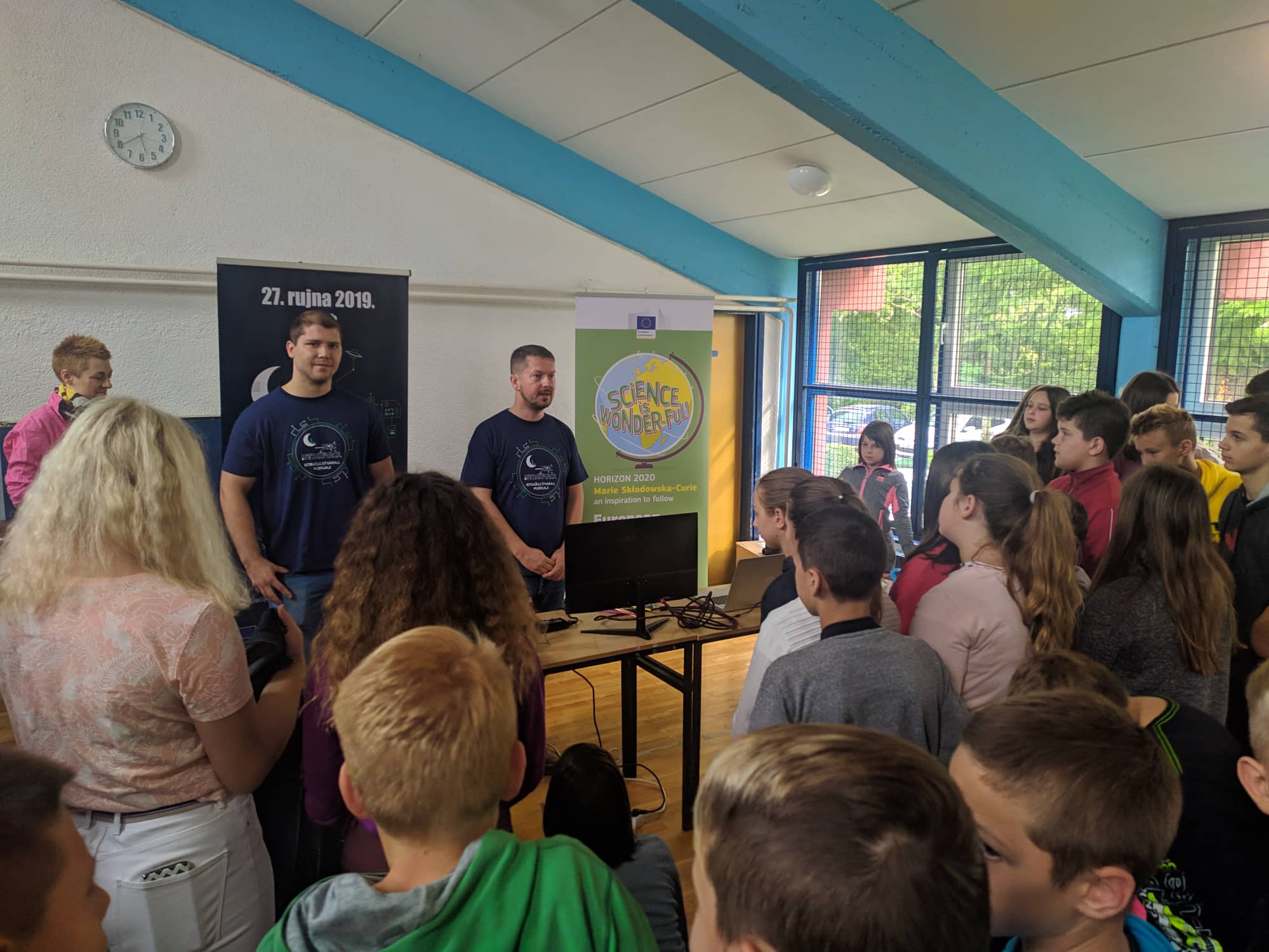 Osim što su učenici na praktičnom radu testirali rad robotske ruke i sami zavirili u 3D mikroskop – uSCOPE, nastao na Sveučilištu Jurja Dobrile u Puli, u završnom je tjednu na satovima gostovala Martine-Nicole Rojina, poznata Njemačka umjetnica, voditeljica moonbounce projekta “Sister moon” u kojem pomoću Dwingeloo teleskopa šalje ljudske glasove na mjesec, a isti se vraćaju u obliku jeke natrag na zemlju.
